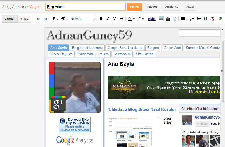 Blog Adınızı Başlığa Girin ⇒ Örnek benim blogum (Blog Adnan)